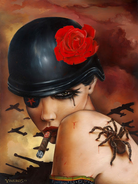 Brian Viveros, é um artista da californiano, os seus trabalhos são conhecidos devido ao conteúdo sensual e erótico. A maioria das suas pinturas e ilustrações são mulheres sensuais de olhar forte e profundo e com elementos como cigarros, tatuagens, cicatrizes, sangue e caveiras. Utilizando uma mistura de materiais como nanquin, acrílica, óleo e aerógrafo, a sua inspiração advém da sua coleção de caveiras, dos seus cigarros e de outros elementos presentes no seu ambiente pessoal.